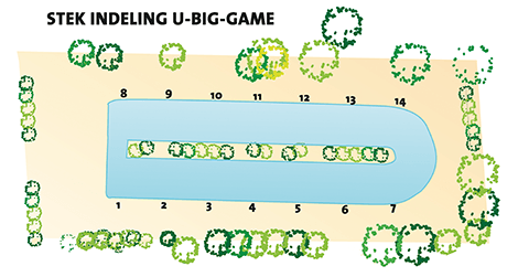 De BIG-GAME is een unieke vijver in Nederland. Deze vijver is dé uitdaging voor de meer dan ervaren sportvisser, die toe is aan het echte werk! Op deze vijver zijn de grootste en sterkste vissen uitgezet. Denk hierbij aan meervallen, karpers en steuren van fikse afmetingen en gewicht. Tot wel 65 kilo. De vijver heeft slechts 14 stekken met een tussenruimte van 15 meter. Om hier te kunnen vissen moet je je eigen (profesionele) uitrusting meenemen (landingsnet wel te huur), minimaal 16 jaar zijn en een ervaren (karper)visser zijn, zie hiervoor ook onze huisregels van deze vijver. Op deze vijver geldt catch & release!.