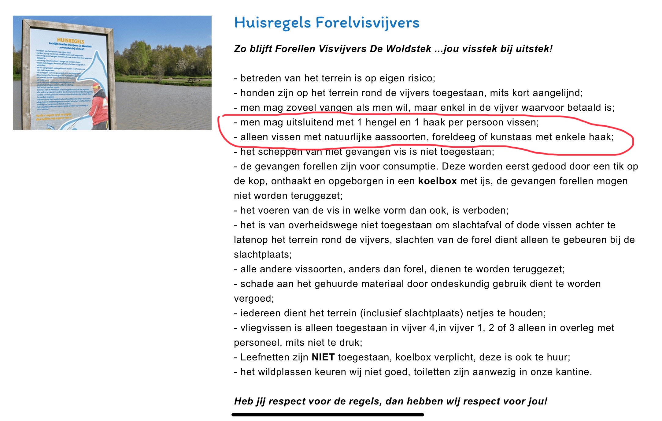 Klik hier voor de aangepaste huisregels van de forelvijvers >>